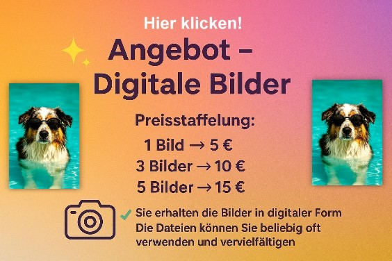 • Nach Zahlungseingang bekommt ihr eure ausgewählten Bilder in digitaler Form zugesendet.